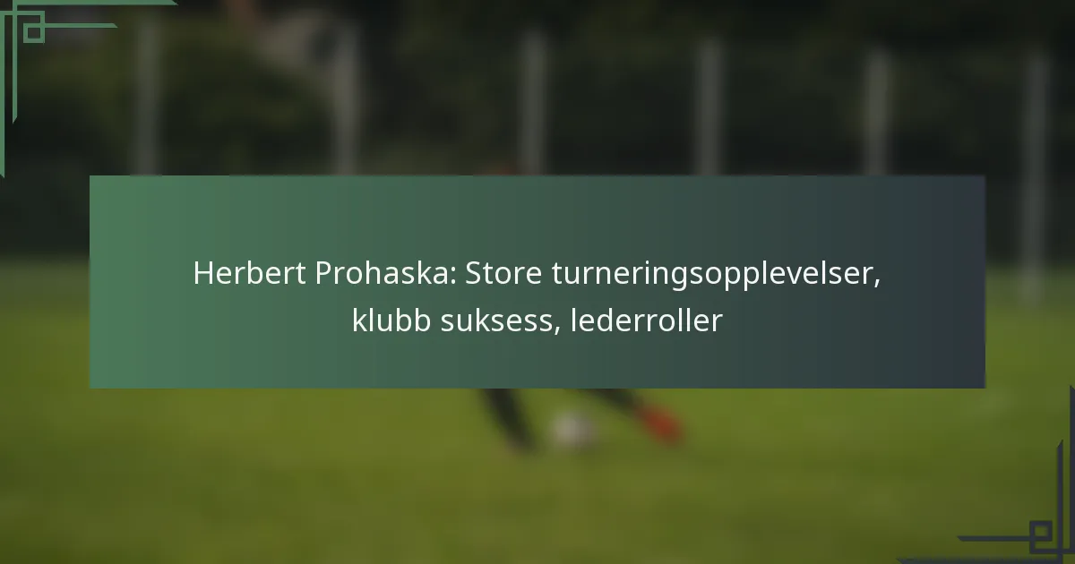Herbert Prohaska er kjent for sine betydelige bidrag til internasjonal fotball, spesielt gjennom sine opptredener i store turneringer som FIFA verdensmesterskapet og UEFA europamesterskapet. Hans prestasjoner har ikke bare formet hans karriere, men også etterlatt en varig arv i østerriksk fotball.